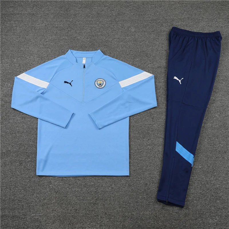 Adult/Kids 2022/2023 Manchester City Half-Pull Training Suit Blue Football Shirt
