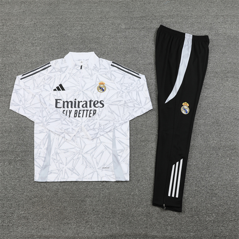 • Adult/Kids 2024/2025 Real Madrid Half-Pull Training Wear White Football Shirt