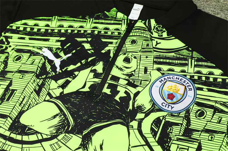 Adult/Kids 2024/2025 Manchester City Half-Pull Training Suit Fluorescent Green Football Shirt